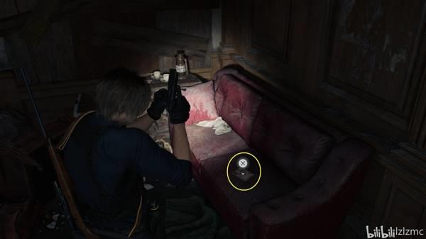 在苹果门酒店西南方,如图红色沙发上,获得【豪华版“1988年的信件”第一封:梅丽尔给妈妈的信1】(梅丽尔是生化2黑人马文的女儿)。