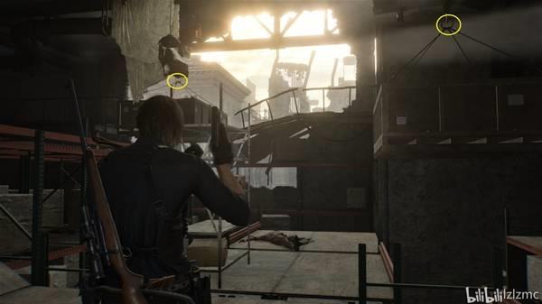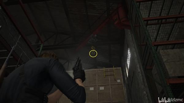 返回鹰之星物流仓库1F,来到上面地图位置,抬头打掉吊扣,然后爬梯子往上走。切出霰弹枪,有敌人埋伏在遮挡物背后,霰弹枪打头直接秒。