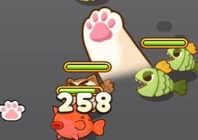 玩家点击怪物可以发动啪唧攻击,对怪物造成伤害,帮助猫猫进行战斗。