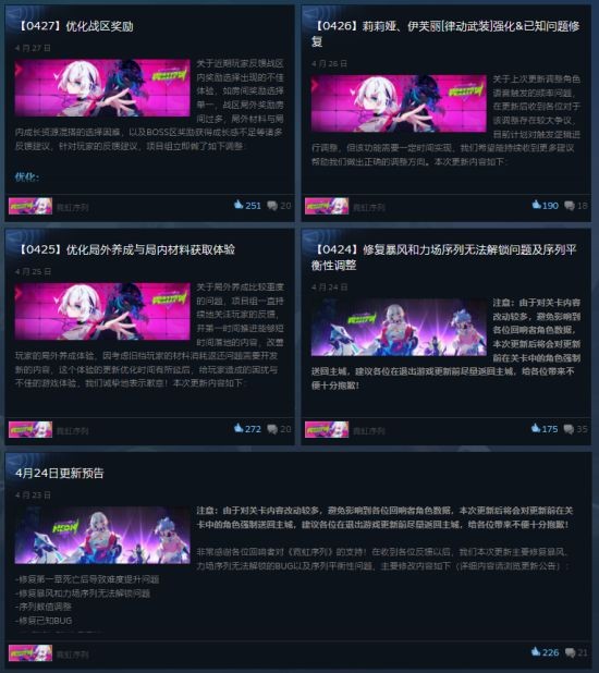 官方积极更新的态度也备受玩家赞誉。游戏上线首周,官方几乎保持着每天一次的更新频率,更新内容皆是根据玩家的反馈和建议所进行的优化和bug修复,力求用最短的时间响应玩家的诉求。