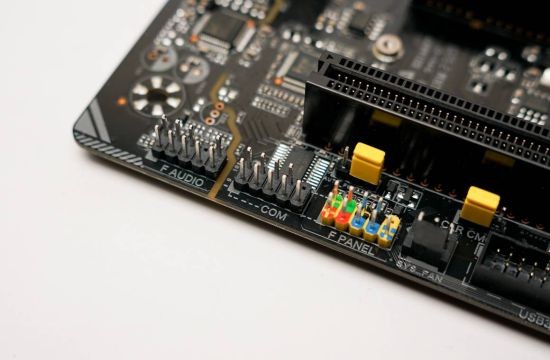 在主板的左下角处,艾尔莎EA A88M-D 提供有9pin的COM插针,我们只要另外购买专门的挡板线就可以扩展出COM口来连接扫描仪、打印机和旧式鼠标等设备。