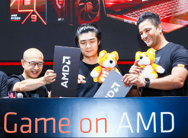 在ChinaJoy现场,AMD OEM销售全球副总裁Mario、AMD 大中华区市场营销副总裁纪朝晖与所思科技创始人、CEO & Recreate Games 工作室制作人罗子雄,携手众多合作伙伴们,在媒体、玩家、粉丝们的见证下,一同开启了AMD游戏硬件装备节。