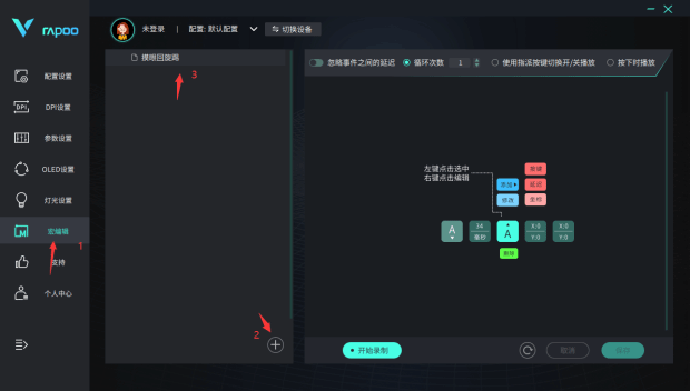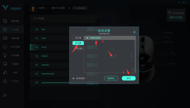 我们通过雷柏VT9PRO轻量化双模无线游戏鼠标来应用游戏,中大手型68G轻量化设计,无论抓握还是趴握都能Get,搭载雷柏自研的C click按键技术、V 无线游戏技术,在稳定性与按键体验性上提供玩家无忧的体验,并支持升级4Khz回报率,搭配原相3395顶配游戏引擎,最高26000DPI,支持7档DPI可调,帮助玩家适配更适合的回报率,指哪打哪,性能拉满的同时让沉浸式体验同步上线。接下来小编将通过驱动宏定义功能,用视频的方式教大家设置一键连招。