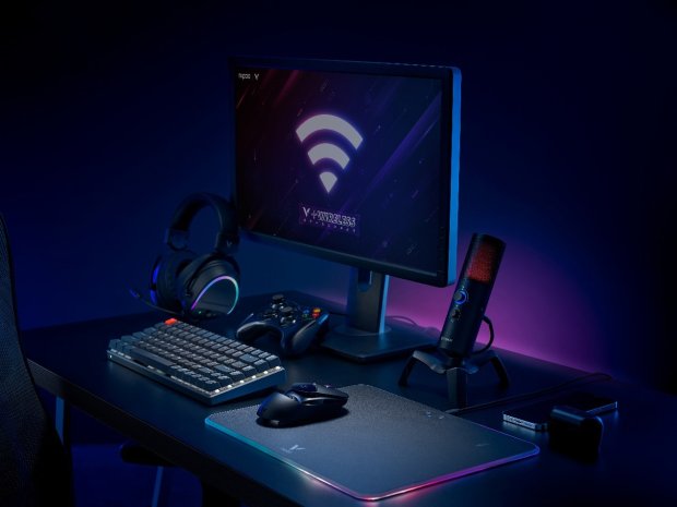 不囿于单一,游戏鼠标、游戏键盘、游戏耳机、游戏手柄、游戏麦克风、鼠标垫、耳机支架等多个品类产品塑造竞技“全家桶”,重构“无线电竞游戏外设”桌面场景化沉浸体验。
