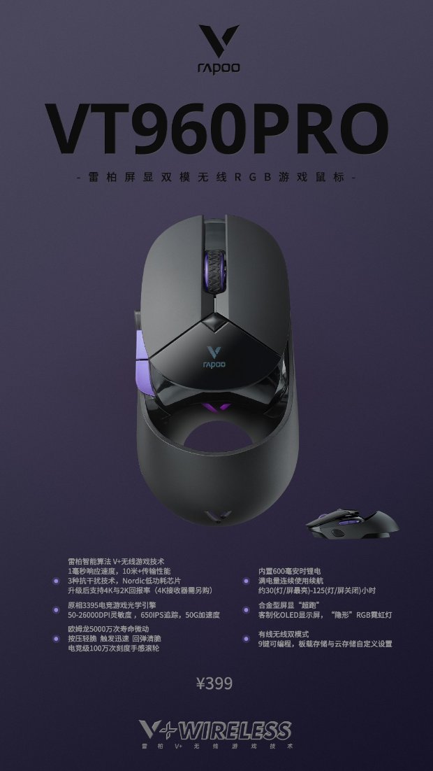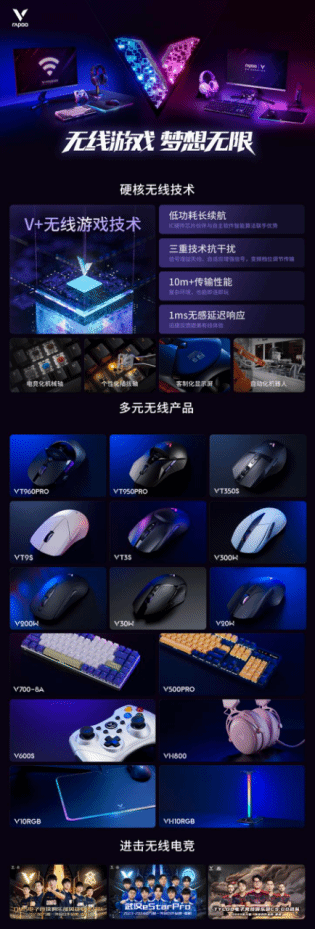 以技术研发为核心,以市场需求为指引,V 无线游戏技术提升优化续航、低延迟、抗干扰、使用距离,4K无线电竞游戏技术游戏响应速度的标准;C click分离式按键预压校调技术全方位稳定手感一致性体验;准确分析、果断判断、专业反应,全面升级无线电竞标杆配置。自主研发定制雷柏轴体、雷柏微动、游戏芯片等核心产品部件,热插拔轴、Qi无线充电、OLED显示屏、防水防尘、板载内存、云端存储等具有出色电竞表现的个性化功能解决玩家需求痛点。