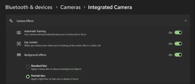 支持锐龙AI的笔记本可以在Windows11的设置中,直接打开摄像头特效