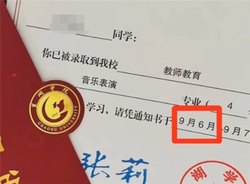 进入8月,距离准大学生们开学的日子越来越近,各个高校的录取通知书也基本发放差不多了。不过,安徽巢湖学院发出的录取通知书上,赫然一处错别字,将报到时间中的“9月6日”,写成了“9月6月”。