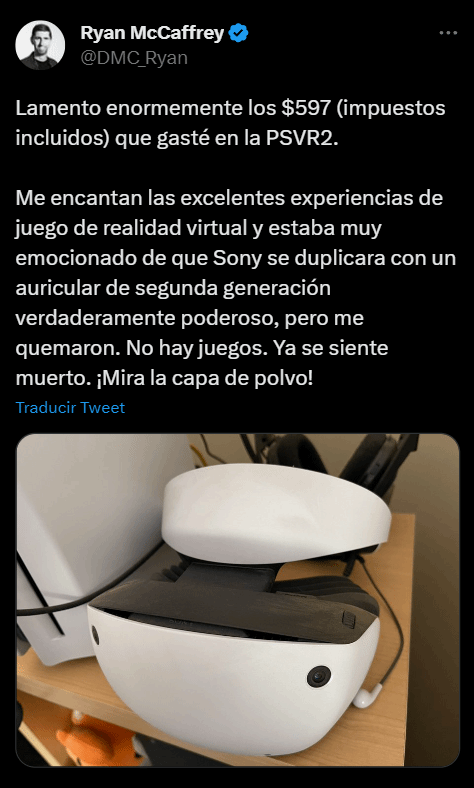 他在推文中表示:“我非常后悔花了597美元(含税)购买PSVR2。