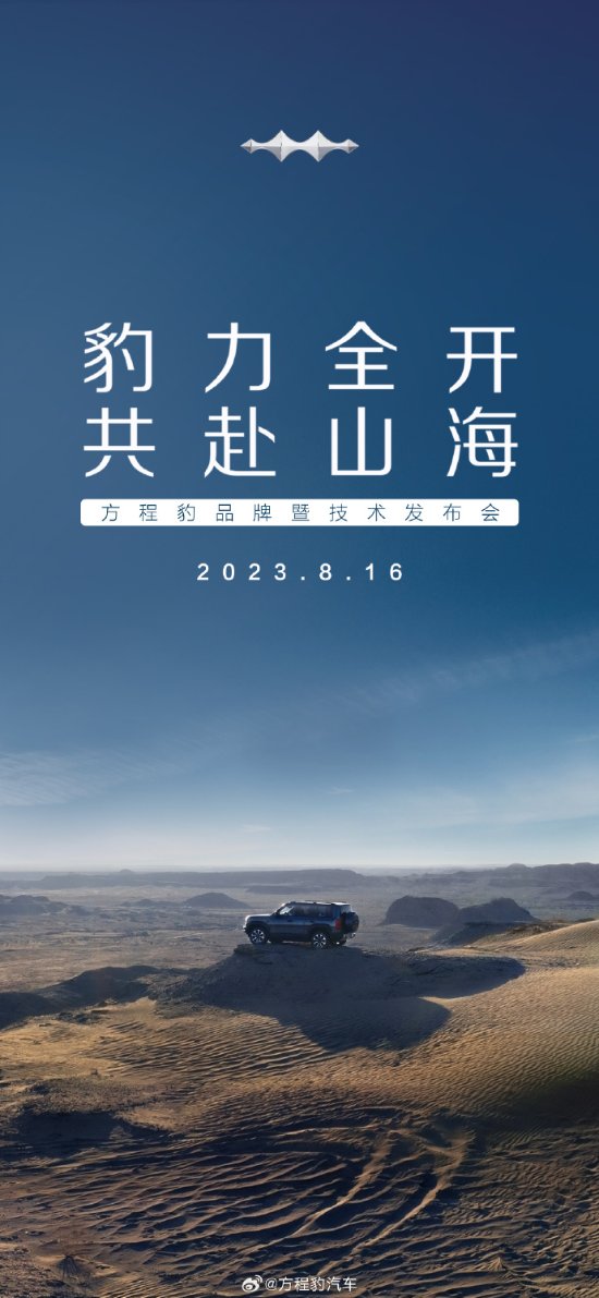据方程豹汽车官方消息,比亚迪方程豹品牌暨技术发布会定档8月16日,届时首款量产车方程豹豹5或将同台亮相。