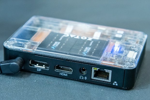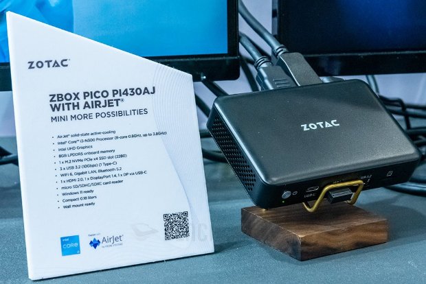 索泰ZBOX PI430AJ体型小巧,性能强大。在0.18升(115*75*22mm)的体积内搭载了Intel i3处理器和8G LPDDR5内存,并且配备3个USB 3.2接口(2*USB-A 1*USB-C),3个视频输出接口(1*HDMI,1*DP,USB-C同时支持DP视频输出),并使用最新的Wifi 6无线技术,信号稳定无卡顿。