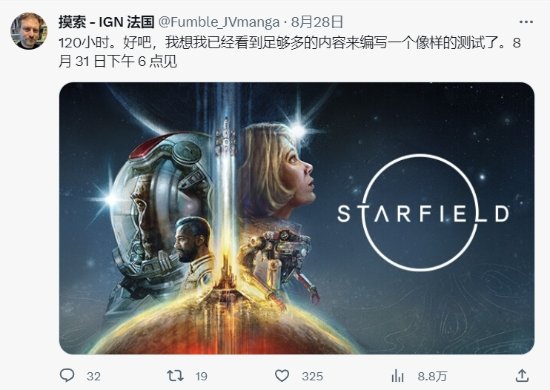 具体到游玩时间,IGN法国编辑Fumble于8月28号暂时结束了他的《星空》之旅并终于开始动笔写下评测——此时他已经游玩120小时,从他拿到评测版后日均游玩12个小时;并且它直言写评测时,脑子里充斥着大量想法,可见《星空》令人咋舌的内容量了。