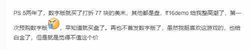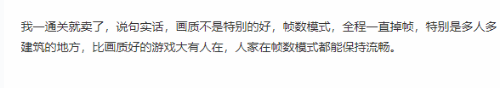 也有玩家表示:通关就卖了,其画质一般,还掉帧;因为玩试玩Demo很喜欢才买,游戏最后也白金了,但觉得不值这个价格。更是有人直接称这是自己首发买过最后悔的游戏。