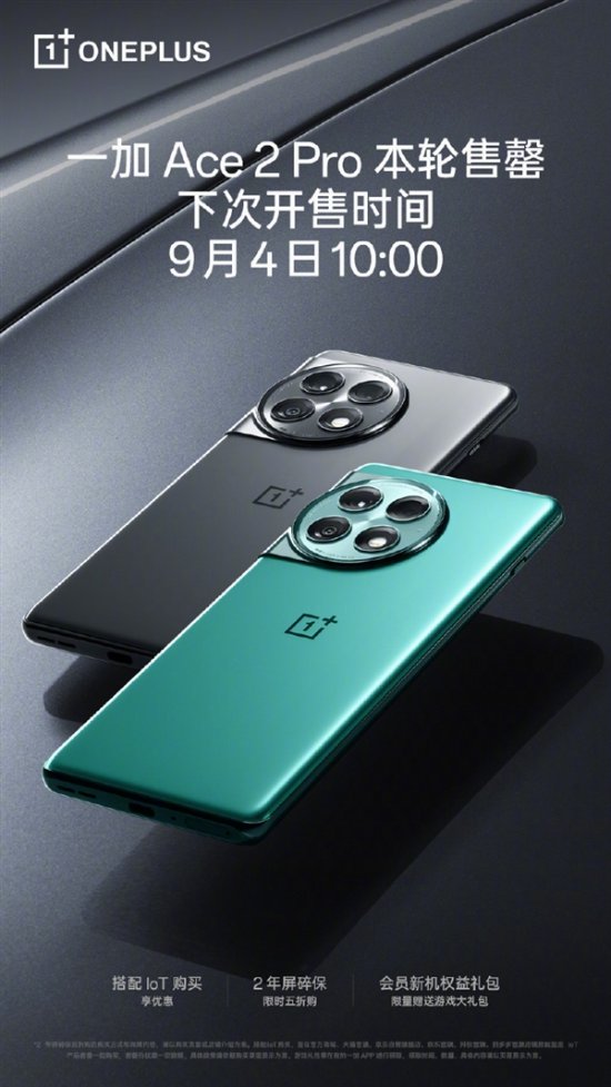 据一加手机官微介绍,一加Ace 2 Pro本轮已售罄,下次开售时间为9月4日上午10:00。