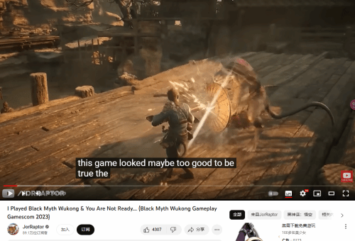 近日,油管89万粉丝的游戏博主JorRaptor发视频表示自己在科隆玩到了《黑神话:悟空》。他称几年前看到的首个预告片看起来优秀到让人觉得是假的。