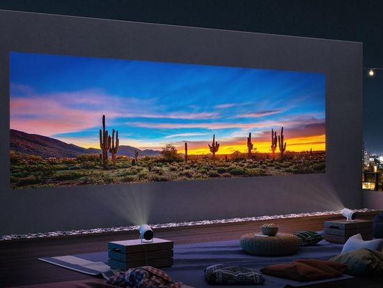 尤为值得关注的是,第二代The Freestyle三星随享智能投影仪在延续前一代优势的基础上,还创新升级了太阳能遥控器及智能边缘融合两大产品优势。该款产品配备的太阳能遥控器无需更换电池,通过室内照明即可充电,将可持续性环保理念贯彻到日常观影点滴。该遥控器还新增了对焦控制热键,缩短用户设置路径,助力其快速享受清晰的画面。另推出“智能边缘融合”这一亮点功能,即搭配两台三星随享智能投影仪,通过手机Samsung Connect应用程序即可将两个画面融合成一个画面,最大投影面积达160英寸,横向竖向均可实现,将视觉冲击力提升至全新境界。