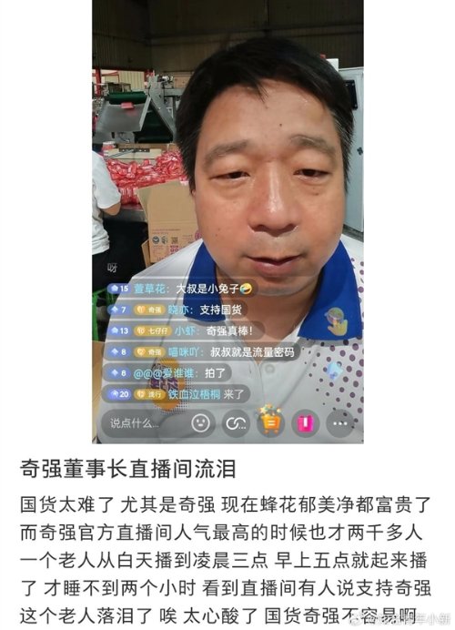 近日,微博话题“奇强董事长在直播间哭了”冲上热搜榜第一名。