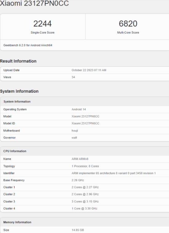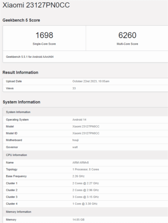 小米14发布会已定档本月26日,日前,小米14手机的身影现身Geekbench,配备16GB RAM,多核成绩相当出色。