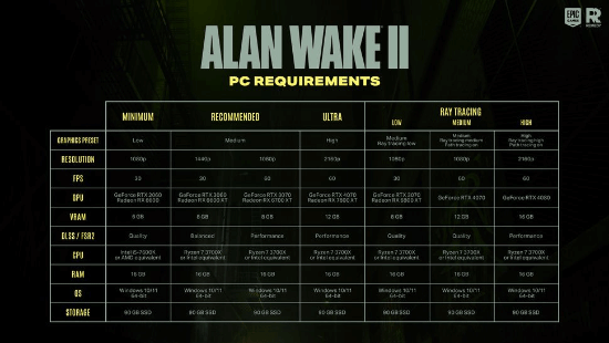 几天前,官方也公布游戏的PC配置要求,在未启用光线追踪的最低配置条件下(以1080P/30FPS运行),需要GeForce RTX 2060或Radeon RX 6600显卡,顶配则需要RTX 4080。要求属实不低。