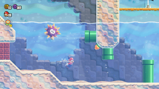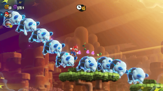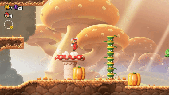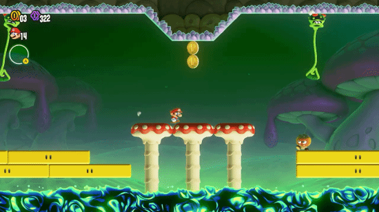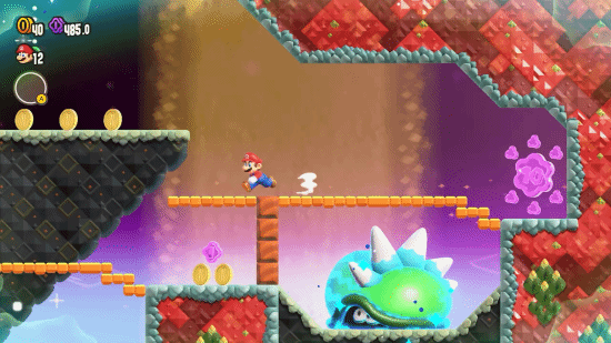 《超级马里奥兄弟:惊奇》中的视觉效果充满了色彩和个性,但它最出众的地方在于动画和关键帧。团队在3D游戏中找到了一种“动作设计像是基于sprite”的感觉。