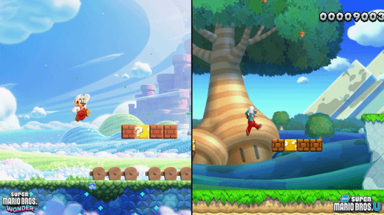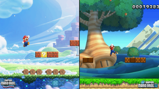 《惊奇》的背景视觉效果也令人印象深刻,而这一成功很大程度上源于开发团队打破了马里奥的传统。早期的马里奥游戏中,该系列每推出一款新游戏,都会采用新的、越来越抽象的形状和设计元素。《惊奇》同样有类似的感觉。