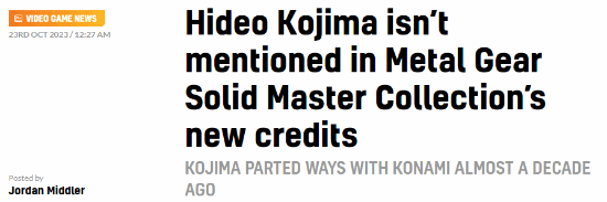 据VGC报道,小岛秀夫的名字没有出现在《合金装备 大师合集1》的新制作人员鸣谢名单中。他在《合金装备5》开发过程中与科乐美的关系恶化,最终导致其与发行商断绝关系。