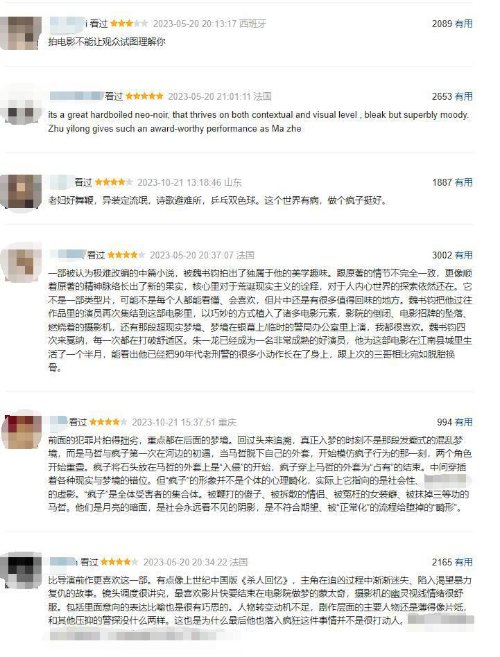 获得高赞的短评认为,本片带入感十足,让人汗毛竖起;对原著的改编十分成功,风格荒诞吊诡,具有独特的美学风格,镜头调度讲究,朱一龙演技合适角色,类似于韩国高分电影《杀人回忆》。