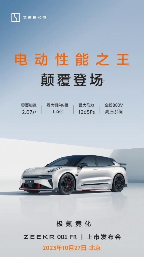 10月24日,极氪汽车宣布,首批 001 FR 量产车型现已下线,该车定位“豪华纯电超跑”,将于 10 月 27 日 19:30 在北京正式发布。