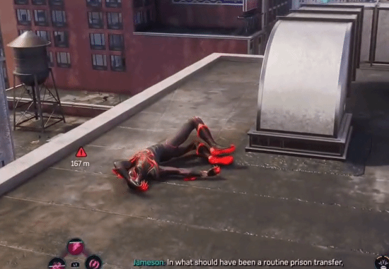 在《漫威蜘蛛侠2》中,失眠组给了玩家更多的自定义选项,其中一项为坠落伤害的开关。这能给玩家带来更多的真实感,发售前大部分人表示不会开这个功能。但发售后情况有些改变,有很多玩家都在使用这个功能,以此来"恶搞"游戏中的两位蜘蛛侠。