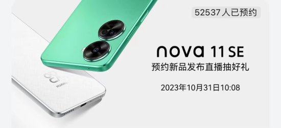 据华为商城信息,华为nova 11 SE将于10月31日上午10:08正式发布,Slogan为“敢拍敢出色”。目前,华为nova 11 SE已在各大电商平台上架预约。