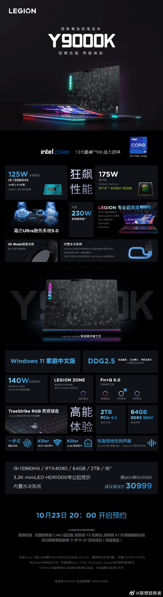 联想全新旗舰电竞本拯救者Y9000K 2023正式发布,首发30999元。