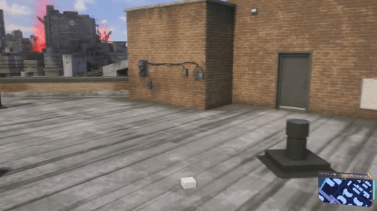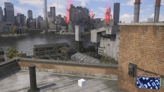 从视频可以看出,由于bug,主角变成了一个白色正方体,并且还能正常移动行走,在楼宇间荡蛛丝,十分喜感。