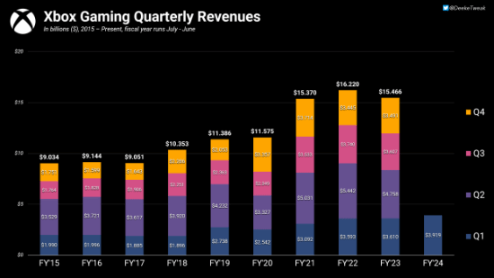 得益于《星空》的推出,Xbox新财年第一季度(2023年7月-9月)的收入达到了创纪录的39.19亿美元,同比增长9%,与去年的业绩相比跃升约3.09亿美元,实现了重大盈利里程碑。
