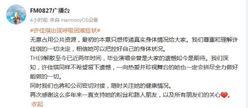 据了解,许佳琪在患病期间仍然心系月底的演唱会,多次与团队沟通工作事宜。她的经纪人也表示,会根据医生建议和许佳琪的身体状况,妥善安排她的工作和生活。