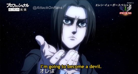 此前曾报道,日本电视台将历史性地采访动漫人物,于10月23日播放对《进击的巨人》主角艾伦·耶格尔的独家专访,目前采访的详细细节已经放出,艾伦·耶格尔在采访中解释了自己要踏平世界的动机。