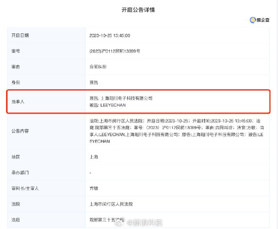 爱企查App显示,近日,EDG俱乐部关联公司上海阳川电子科技有限公司新增一则开庭公告,被告为LNG选手李汭燦(ID:Scout),案由为合同纠纷,该案于10月25日,也就是今日在上海市闵行区人民法院开庭审理。