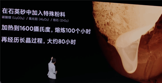 据介绍,小米龙晶玻璃的原材料中添加了t2O (氧化锂),SiO2 (二氧化硅),Al2O3 (氧化铝)、ZrO2(氧化锆) 、R2O,(五氧化二磷)、Na2O (氧化钠)等成分。