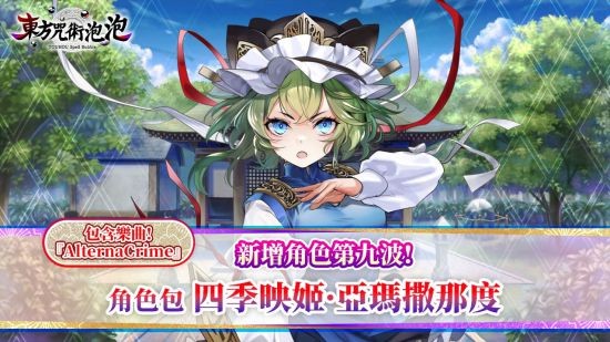 新增角色「四季映姬·亚玛撒那度」除了可使用单人模式及对战模式等功能,该角色包中还收录由Ayaponzu*所演唱,来自少女理论观测所的高人气乐曲「AlternaCrime」。