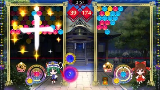 《东方咒术泡泡》是以「东方 Project」为原作的二次创作作品,在能以简单操作的泡泡射击式益智玩法之中加入节奏游戏要素,是款能够一边轻松地沉浸于东方Arrange乐曲一边游玩的全新节奏益智游戏。
