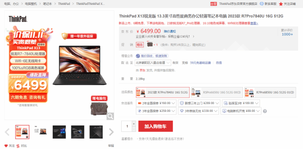 恰逢今年的双11期间,接驳能力强大,仅有1.26kg的ThinkPad X13锐龙版隆重上市,现在购买可享受6期免息,下单还送电脑包,尤其适合移动办公,经常差旅的商务人士选购。(传送门:点击进入)