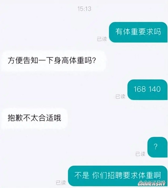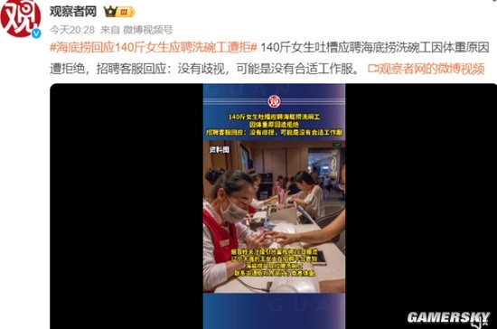 10月26日,辽宁大连的王女士在招聘平台看到海底捞门店招聘洗碗工,联系沟通后对方询问了身高体重,王女士身高168cm,体重140斤,随后招聘人员称不合适。