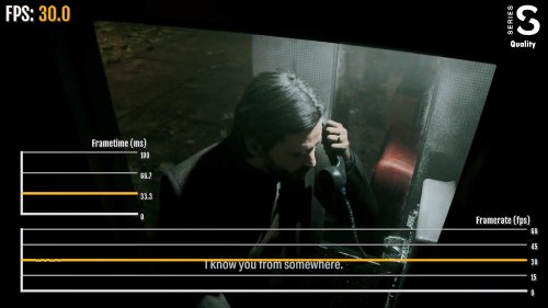 《心灵杀手2》为主机版本专门设计了30帧的质量模式以及60帧的性能选项。对比显示,性能稍差的XSS在30帧模式下也能有较为稳定的良好表现,部分特定区域可能出现帧数下降的情况。此外,两种模式看起来都比具有相似输出分辨率的大多数其他游戏要更柔和,整体视觉效果也十分出色。