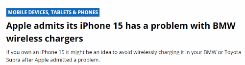 据tweaktown消息,苹果公司近期承认:iPhone 15、iPhone 15 Plus、iPhone 15 Pro和iPhone 15 Pro Max手机的用户如果尝试在某些特定汽车上进行无线充电后,可能遇到NFC功能被禁用的问题。
