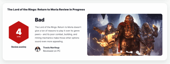 IGN发布了《指环王:重返摩瑞亚》的评测文章,为本作打出了4分。