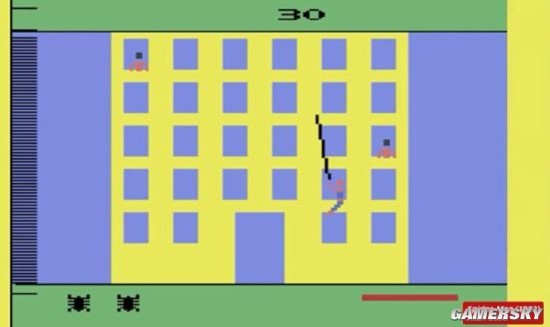 蜘蛛侠首次登陆的游戏主机是名噪一时的雅达利2600,或许你曾听说过当仗着有IP在手的雅达利做出旷世粪作《E·T》的故事,但是我得说,这时的蜘蛛侠居然看起来还不错。