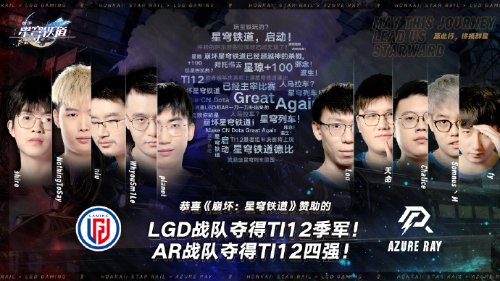 Ti12于今早正式结束,而由《崩坏:星穹铁道》赞助的LGD战队获得了季军、AR战队获得了四强。