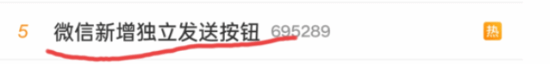昨晚,“微信新增独立发送按钮”这一词条登上了微博热搜,并且高居榜单第五,这让不少人有些纳闷。不过点开后才发现,原来是iOS端微信迎来了一次“史诗级”更新。