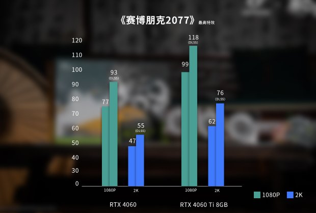 一款性能强大的显卡也是发挥玩家实力的条件之一,本次首发的雾山五行联名硬件包含iGame GeForce RTX 4060 雾山五行定制版OC 8GB、iGame GeForce RTX 4060 Ti 雾山五行定制版OC 8GB、和iGame GeForce RTX 4060 Ti 雾山五行定制版OC 16GB三款RTX 4060家族系列显卡,均掌握应对全场景的实力。对于玩家而言游戏测试是重点关注项目,以下图为例,分别测试了RTX 4060及RTX 4060 Ti 8GB在《赛博朋克2077》的帧数情况。在1080P/2K分辨率中,RTX 4060的表现为77/47帧,而RTX 4060 Ti 8GB表现为99/62帧,在开启NVIDIA DLSS后,RTX 4060在1080P及2K的表现为93/55帧,而RTX 4060 Ti 8GB为118/76帧,得到了大幅度提升!除了《赛博朋克2077》外,两款产品在DLSS 3/DLSS 3.5技术的加持下均能够流畅应对诸如《心灵杀手 2》、《瑞奇与叮当:时空跳转》、《传送门:序曲》RTX版、《暗黑破坏神IV》和即将发布的《使命召唤:现代战争 3 2023》等时下3A大作,玩家可根据自身的游戏需求进行硬件装备的选择。