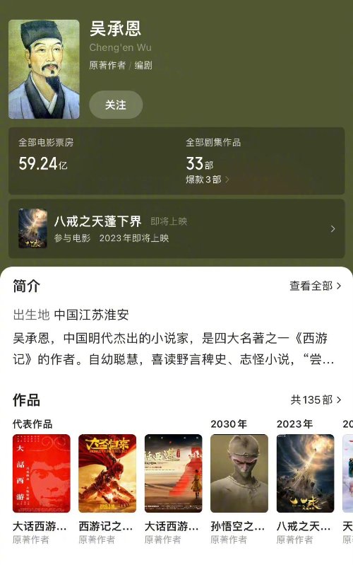 其中,吴承恩靠《大话西游》《大圣归来》等爆火影片力压另外三位作者,可谓是顶流中的顶流。