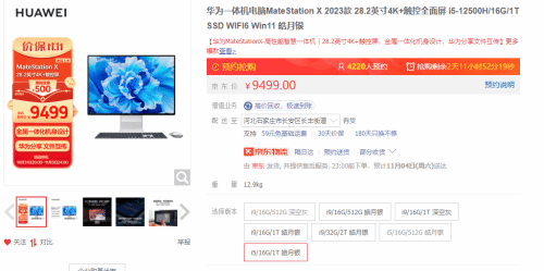 华为在七月份推出的新款一体机电脑MateStation X 2023款在双十一来临之际又新增了16G 1TB的新版本,搭载i5-12500H处理器,售价9499元,现已开启预约。