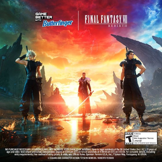零食品牌Butterfinger和《最终幻想7:重生》的联动海报已经在网络上流传。